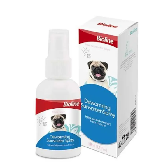 El spray de protección solar antiparasitario de 50 ml esta diseñado para proteger la piel de tu mascota de los rayos del sol mientras también previene la infestación de parásitos. Contiene una fórmula especial que combina ingredientes protectores contra los rayos UVA y UVB del sol, junto con repelentes de insectos y parásitos como mosquitos, garrapatas y otros.