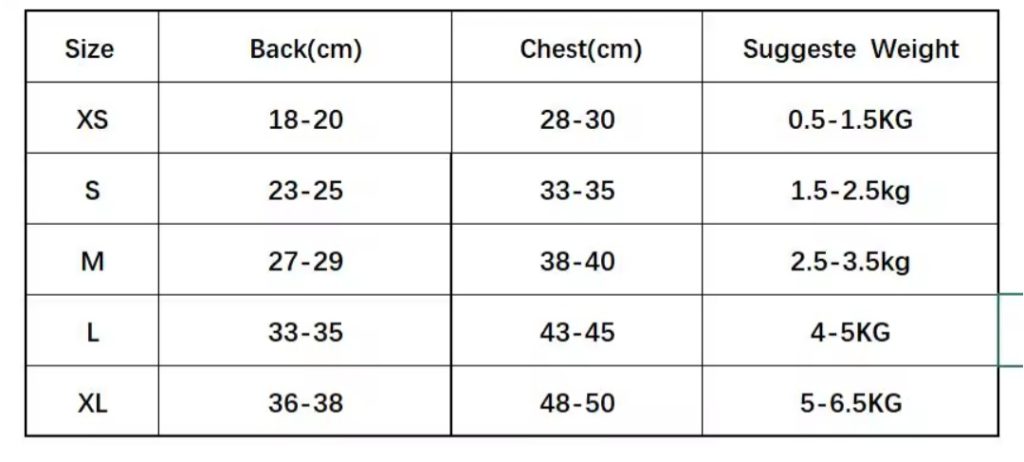 XS, S, M, L, XL