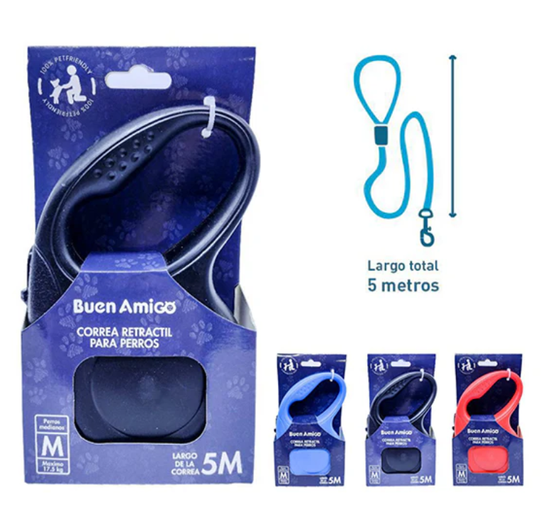 Correa retráctil para paseos de perros de 5 metros, ideal para perros de raza mediana.